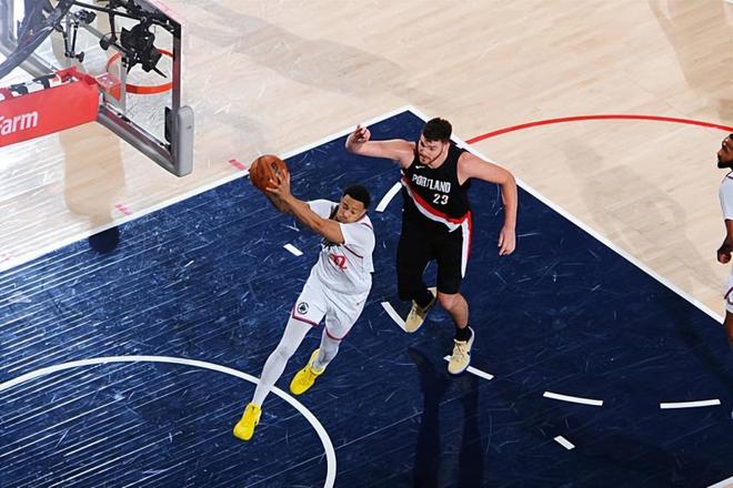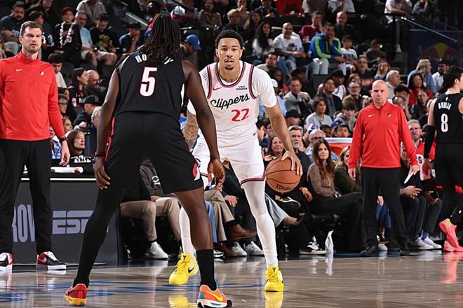 本场比赛中,快船虽然输掉了比赛,但是球队的替补侧翼新星乔丹-米勒(Jordan Miller)的表现还是相当不错的,展现出了自己全面的个人能力。米勒全场出场24分54秒,投篮8中6,三分线外3中2,罚球4中2,以超高的效率得到了16分2篮板3助攻1抢断的数据,没有失误和犯规,正负值也是达到了全队最高的+3。米勒在进攻端展现出了全面的得分能力,他有着很强的突破能力和终结能力,他也命中了两记外线投篮,在进攻端起到了很好的效果,而且他也具备一定的支配球能力,他在进攻端的功能非常丰富。除此之外,米勒在防守端的表现也是值得肯定的,他也是保持了很高的专注度。米勒在本场比赛中也算是快船全队为数不多表现尚可的球员了,只是他并没有得到足够的球权支持,他也没有办法为球队提供更大的支持了。