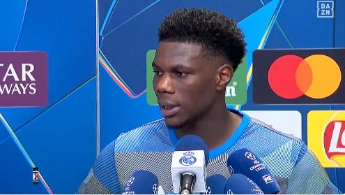 欧冠1/4决赛首回合,皇马主场1-2输给拜仁,皇马中场楚阿梅尼赛后在混采区接受了采访。